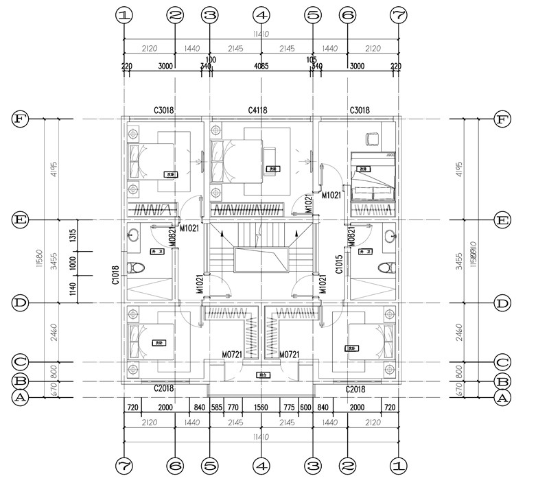 三层,四层布局图:卧室(带卫生间)、卫生间、书房