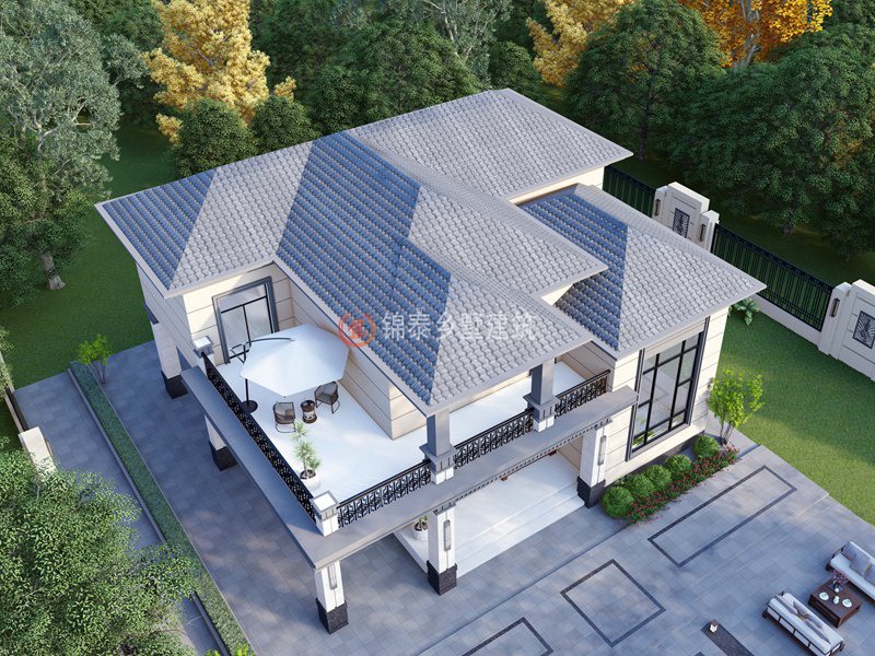 农村二层新中式风格注重传统文化元素的融合和创新,适合展现正式和庄重的氛围。在外观设计上,可以选用典雅的灰色石材和红色砖墙来打造别墅的立面,增加建筑的稳重感。客厅是别墅的核心区域,挑空设计可以增加空间的通透感和宽敞感。弧形楼梯是一个亮点。楼梯可采用实木材质,通过弧度的设计,增加别墅的艺术感。